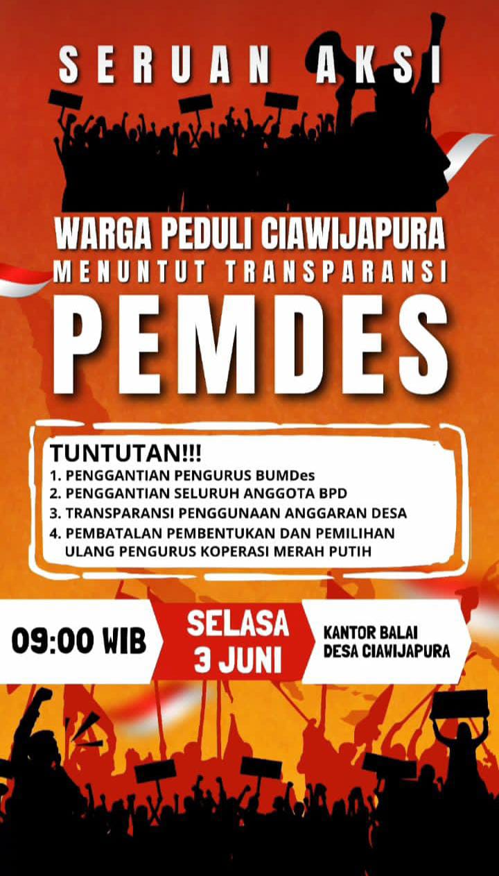 Ketua Forum Warga Peduli Ciawijapura, Bo’im, membenarkan terkait beredarnya surat dan rencana aksi yang bakal digelar pekan depan. Forum Warga Peduli Ciawijapura mendesak Pemerintah Desa Ciawijapura untuk membuka laporan penggunaan anggaran desa secara transparan.